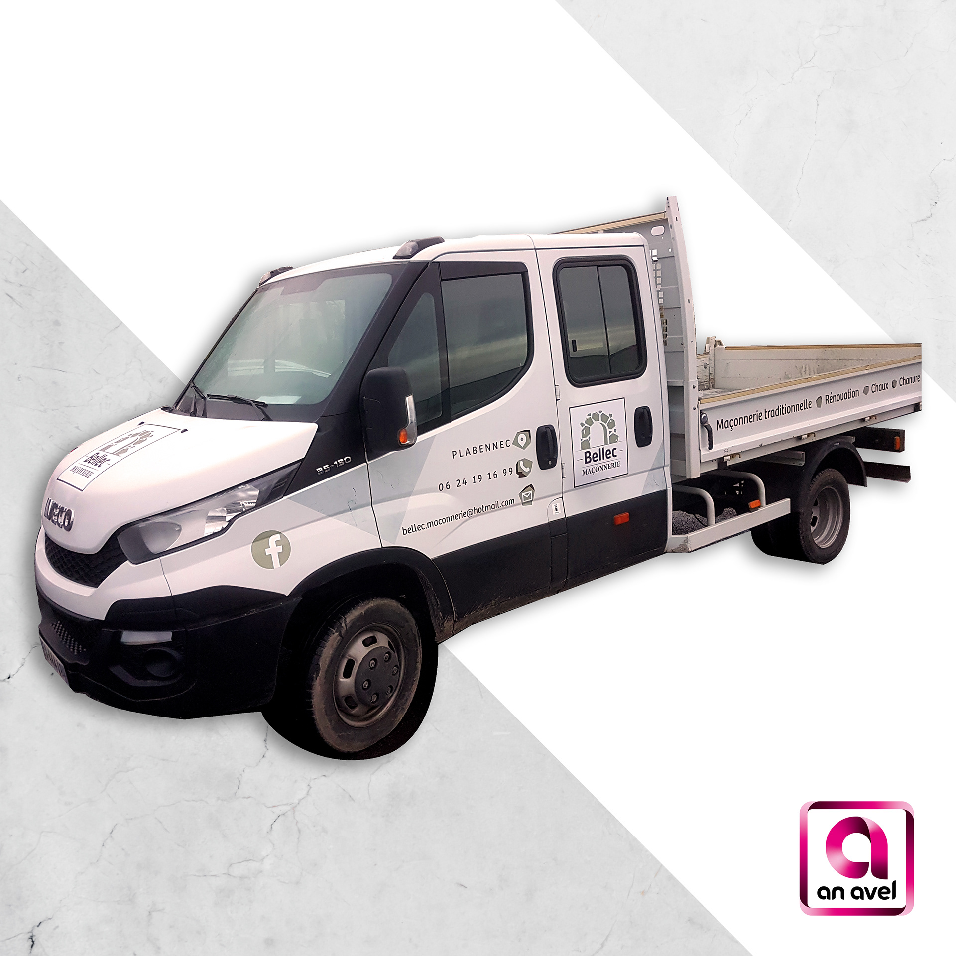 Création de l'identité visuelle : logo et supports de communication. Réalisation entre autres de cartes de visite, du marquage des véhicules et de panneaux de chantier.
