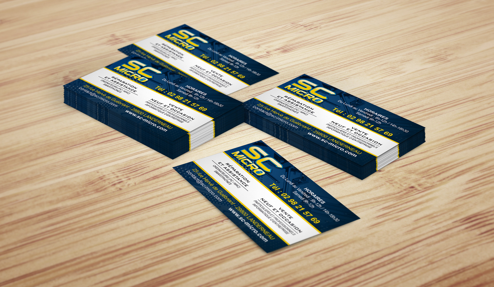 Création de l'identité visuelle : logo et supports de communication. Réalisation entre autres de l'enseigne, de la vitrine et de cartes de visite.